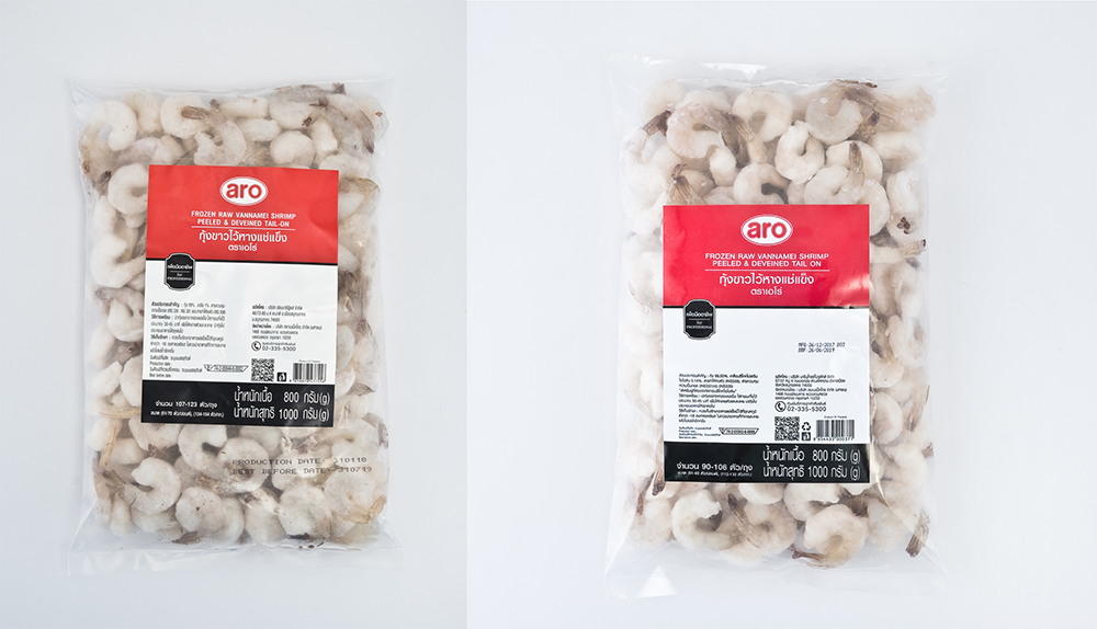 ในปัจจุบันมีกุ้งแช่แข็งไว้หาง ที่มีกระบวกการมาตรฐานระดับสากล ควบคุมคุณภาพให้มีความสม่ำเสมอทุกตัว คงความสดได้ยาวนาน มีขนาดไซส์ให้เลือกสรร ทั้งขนาดไซส์ใหญ่ 90-106 ตัว/กิโลกรัม และขนาดไซส์เล็ก 107-123 ตัว
