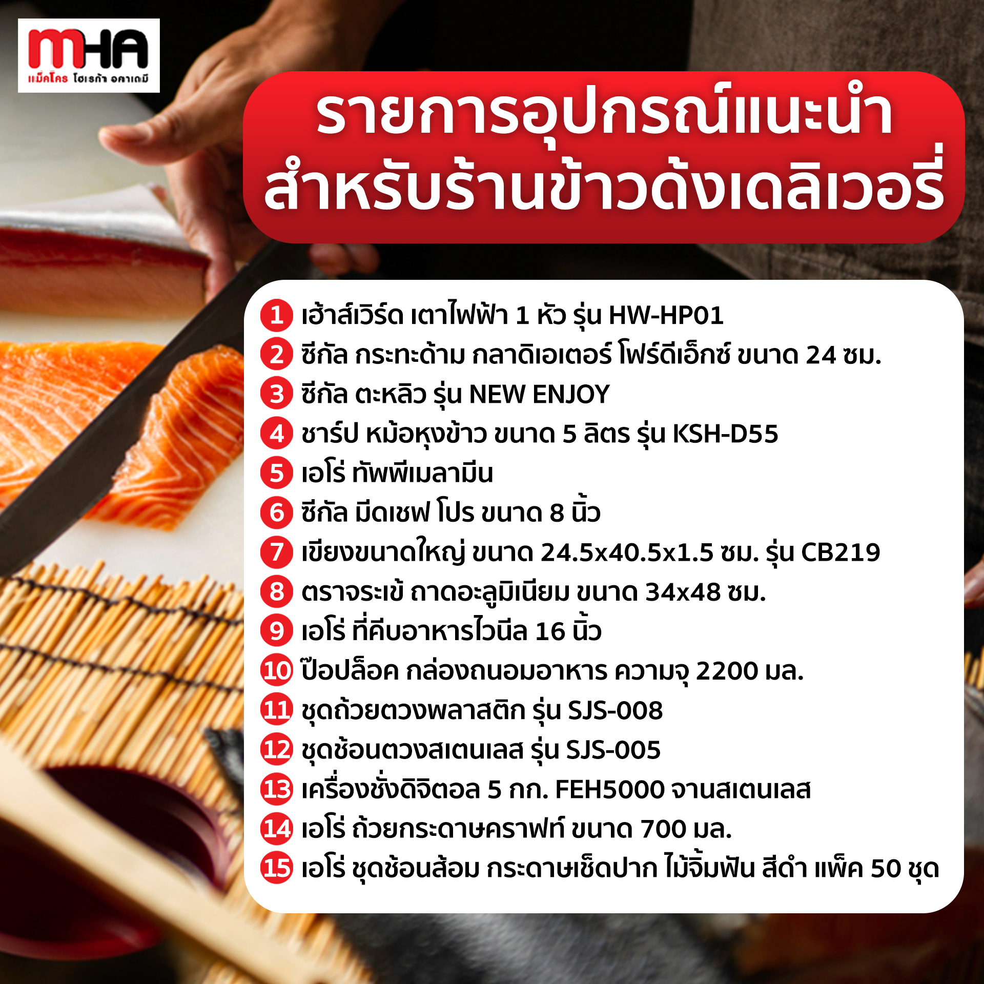 รายการอุปกรณ์แนะนำ สำหรับข้าวด้งเดลิเวอรี่