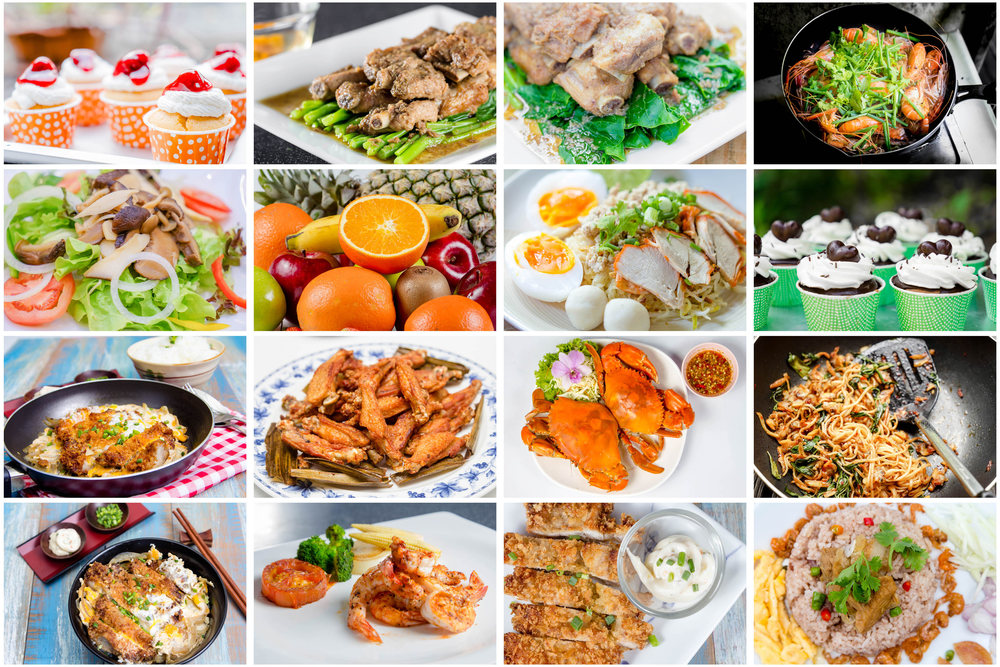 6. ออกแบบภาพอาหารให้เป็นงานศิลปะก็ได้เช่นกัน หากมีทุนในการตกแต่งร้านมากหน่อยและมีพื้นที่กว้างพอ ลองทำผนังด้านหนึ่งให้เป็นเมนูอาหารของร้านไปเลยก็ได้ โดยการถ่ายภาพอาหารหลายเมนู แล้วนำมาจัดเรียงให้สวยงาม ผนังร้านเราก็จะเหมือนเป็นงานศิลปะชิ้นหนึ่งได้เลย ลองหาไอเดียตกแต่งร้านเพิ่มเติมได้ที่