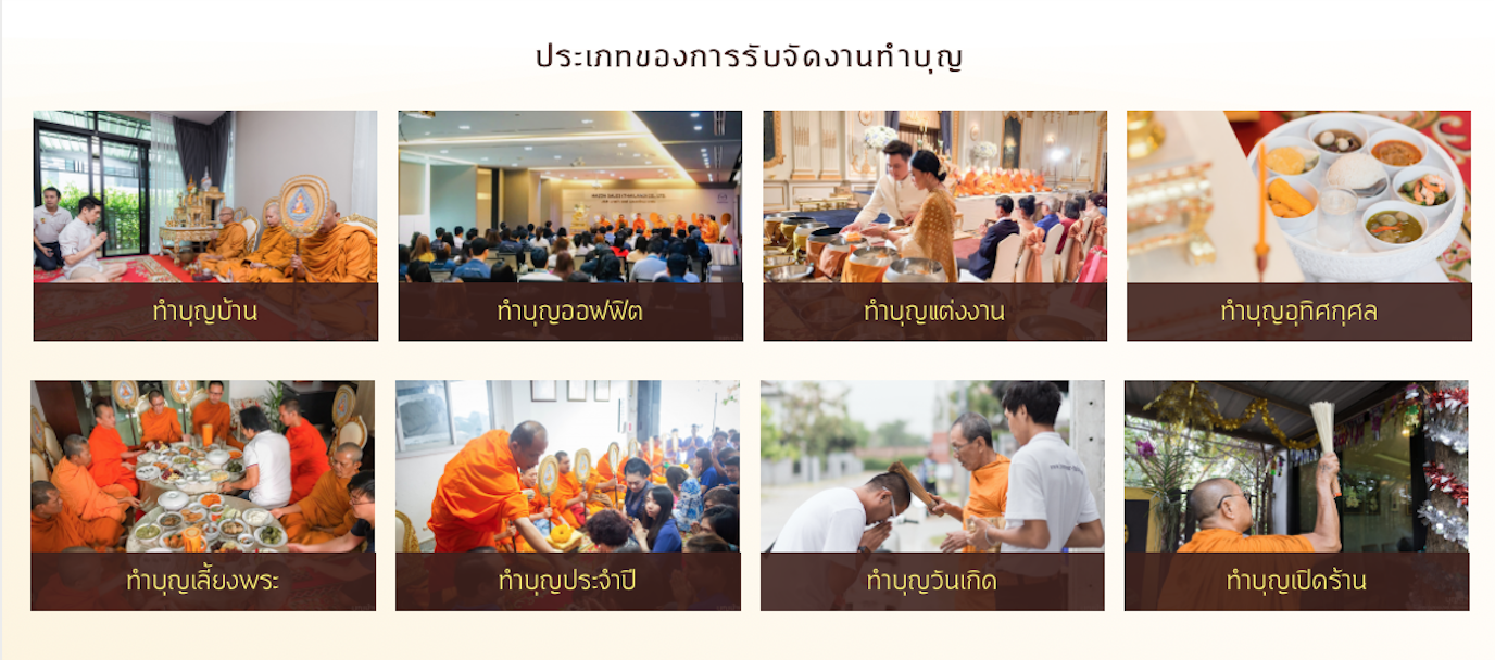 พอเห็นเขาบ่นแบบนี้ก็เลยเกิดเป็นไอเดียว่า ถ้าเรารับจัดงานทำบุญบ้าน ทำบุญออฟฟิศให้คนอื่นคงจะดี เพื่อมอบสะดวก รวดเร็ว แล้วก็ชวนคนมาทำบุญได้รวดเร็วยิ่งขึ้น จากไอเดียเริ่มต้น ทำให้เราศึกษาข้อมูลเกี่ยวกับวิธีการจัดทำงานบุญทั้งหมดว่าทำอย่างไรบ้าง ต้องมีอะไรบ้าง โดยการไปศึกษากับพระว่าต้องเตรียมอย่างไร ซึ่งหนึ่งในนั้นก็มีอาหาร โดยเมื่อ 7 ปีที่แล้ว เราไปจ้างคนอื่นมาทำแคเทอริ่งให้ เหมือนเราเป็นออแกไนเซอร์ นั่นคือสิ่งที่เริ่มต้น